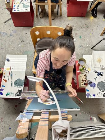 - Oder lässt es trocknen und kommst später zurück zum Weitermalen – unser Studio steht dir offen.