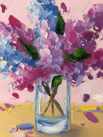In dieser entspannten Malsession malen wir Flieder in einem Glas – genau so, wie man es sich vorstellt. Der Fokus liegt auf Textur, lockeren Pinselstrichen und dem Spass am Material.