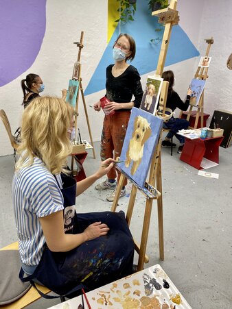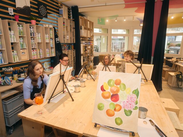 Unsere Malschule in Basel ist etwas ganz Besonderes. In einer lockeren, inspirierenden Atmosphäre kannst du deine kreative Seite entdecken. Ob Acrylmalerei abstrakt oder realistische Motive – wir geben dir Raum zum Experimentieren und begleiten dich mit viel Spass und guter Laune auf deiner künstlerischen Reise. Du willst Acrylmalerei lernen oder dein Können vertiefen? Bei uns findest du den passenden Kurs für dich.