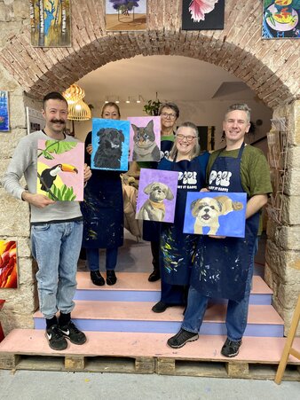 Nein, wir stellen dir alles zur Verfügung – Pinsel, Farben, Leinwände und mehr. Du brauchst nur deine Kreativität mitzubringen.