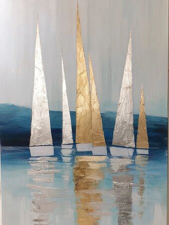 In dieser Malsession geht’s auf den See. Hohe, elegante Segelboote erheben sich über schimmerndem Wasser, gemalt in Blau, Silber und leuchtendem Gold. Mit schwungvollen Pinselstrichen und funkelnden Goldakzenten fängst du sowohl die Eleganz wie auch die Energie der Segel im Wind ein.