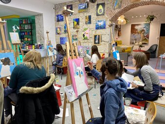 Für Paare, beste Freund*innen oder Familien, die zusammen kreativ werden möchten, gibt es bei uns die Möglichkeit zum Partner-Malen.