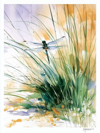 In dieser Aquarell-Malsession gestaltest du eine sanfte Szene einer Libelle, die über weiche, sonnendurchflutete Farben und ein Bett aus saftigem grünem Gras schwebt. Zarte Verläufe von warmem Gelb und Pfirsich fliessen in frisches Grün und lassen das feine Schimmern der Libelle im Mittelpunkt erstrahlen.