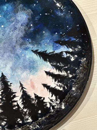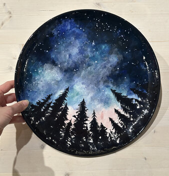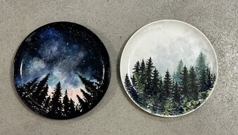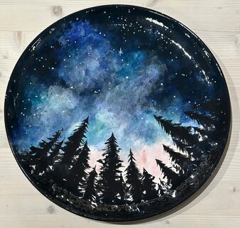 Create your own night sky on ceramic in this relaxing, creative session. Paint a dreamy forest silhouette beneath a glowing, star-filled sky, blending deep blues, soft nebula tones, and sparkling constellations. Perfect for all skill levels—come unwind and leave with a piece of art that captures the magic of the night.