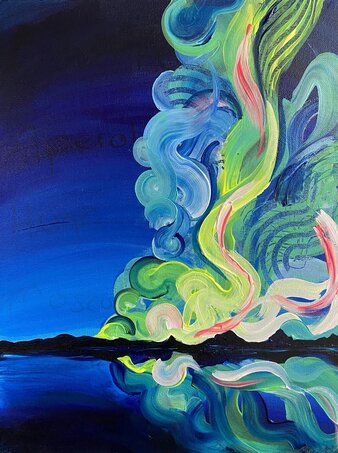 You’ll learn how to build up those swirling lights and snowy clouds with thick, sculptable paste and glowing acrylics. Mix it, smear it, layer it — and make the sky literally come to life.