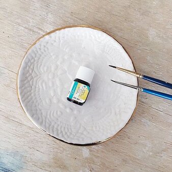 Golden luster is a speciality ceramic material that contains real gold and should be handled with care. It has a strong smell, so we’ll use small amounts and keep the room well-ventilated. Please avoid touching your face while painting and wash your hands thoroughly afterwards.