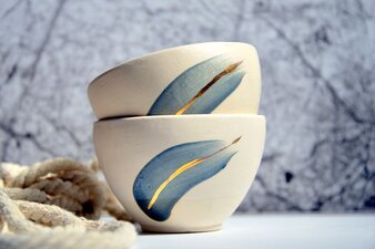 You’re welcome to bring glazed ceramics you previously created in our studio, or you can choose from a small selection of studio pieces provided for the workshop. Gold lustre can be applied to most glazed surfaces, adding beautiful accents such as outlines, patterns, lettering, or decorative highlights.