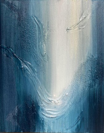 Step into the flow with this Abstract Painting — a dance of soft motion and luminous colour. Shades of blush, blue, and white blend and fold into each other, creating a dreamy balance between calm and movement.
