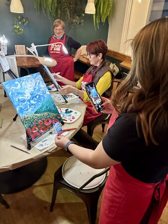 That depends on your chosen offer. We offer events lasting two to three hours, intensive workshops lasting up to four hours, courses lasting several days and flexible painting times. Just take a look at our programme for details of our painting courses.