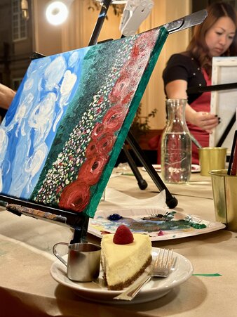 Then it’s time to get artsy: one of our lovely instructors will guide you through a relaxed, step-by-step painting session — fun, inspiring, and totally beginner-friendly.