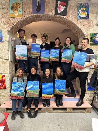 Fancy a colourful spectacle? Our painting courses in Basel are great - like a party with brushes: casual, colourful and completely stress-free. Whether you live in Basel or come from the surrounding area - our creative painting courses offer a great break from everyday life. Whether you are just starting out or are already a keen painter - we mix colours and fun into a creative experience in our painting courses.
