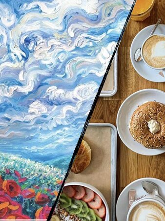 We kick things off with a fresh croissant and your choice of hot drink or mimosa as you arrive — a little treat to ease into the creative mood. Settle in, sip, snack, and get ready to paint your heart out!