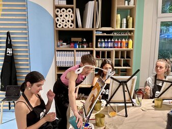 Our paint workshops are perfect for anyone who wants to delve deeper into the world of art - whether with brushes or clay. Whether you're just starting out or already have experience: Here you'll find the right mix of instruction, technique and creative freedom. Each workshop is structured in such a way that you learn a new method and can put it into practice straight away - whether in painting or ceramics. With professional materials, an inspiring atmosphere and perhaps a glass of Prosecco, every workshop will be an unforgettable experience. You can take part on your own or book as a group - whether as a drink and paint event, ceramics workshop or intensive art class: you go home with new skills, a finished work of art and lots of fun.