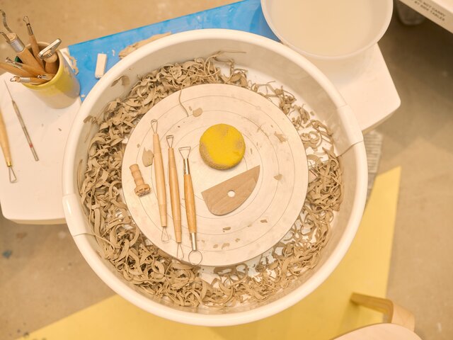 Wheel throwing is the most playful activity in the PIE portfolio. Our instructor will show you the basics, the disc and the group will do the rest. When you sit at a potter's wheel for the first time, you never know exactly what will come out. That's what makes it so entertaining: everyone struggles with the same lopsided lump, and everyone laughs at themselves and the others.