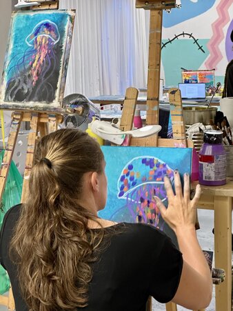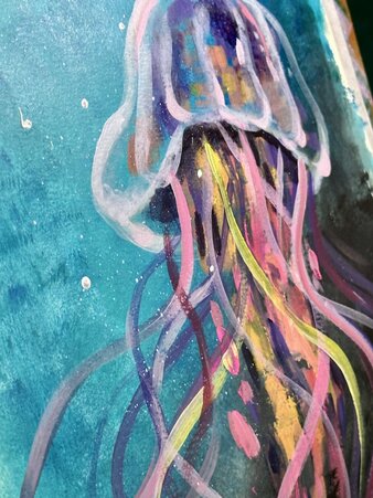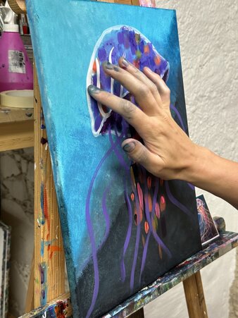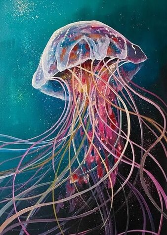 Tauche ein in die schimmernde Tiefe und male eines der faszinierendsten Wesen des Ozeans: die Qualle. Ätherisch, elegant und ein bisschen ausserirdisch – diese schwebende Schönheit ist der Star unseres einmaligen Glow-in-the-Dark-Malevents.