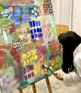 Wir sind keine traditionelle Malschule mit strengen Regeln. Wir sind ein buntes Team aus Künstlerinnen und Künstlern, Kreativen und Farbverrückten. Unsere Malkurse in Zürich sind für alle, die sich inspirieren lassen wollen. Ob du zum ersten Mal einen Pinsel hältst oder schon Erfahrung hast – wir laden dich auf eine farbenfrohe Abenteuerreise ein.