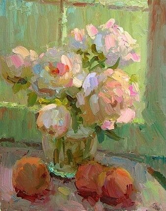 In diesem Ölmalkurs bringst du ein Stillleben mit Pfirsichen & Blüten auf die Leinwand – voller Farbe, voller Flow und mit der Garantie: es wird richtig gut.