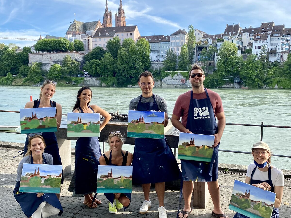 Ein privater Instructor begleitet euch und führt euch Schritt für Schritt durch das Motiv. Alle malen dasselbe Bild — aber jedes entsteht mit der eigenen Perspektive auf den Ort. Am Ende nehmt ihr ein Werk mit nach Hause das nicht nur zeigt was ihr gemalt habt, sondern auch wo ihr wart als ihr es gemalt habt.