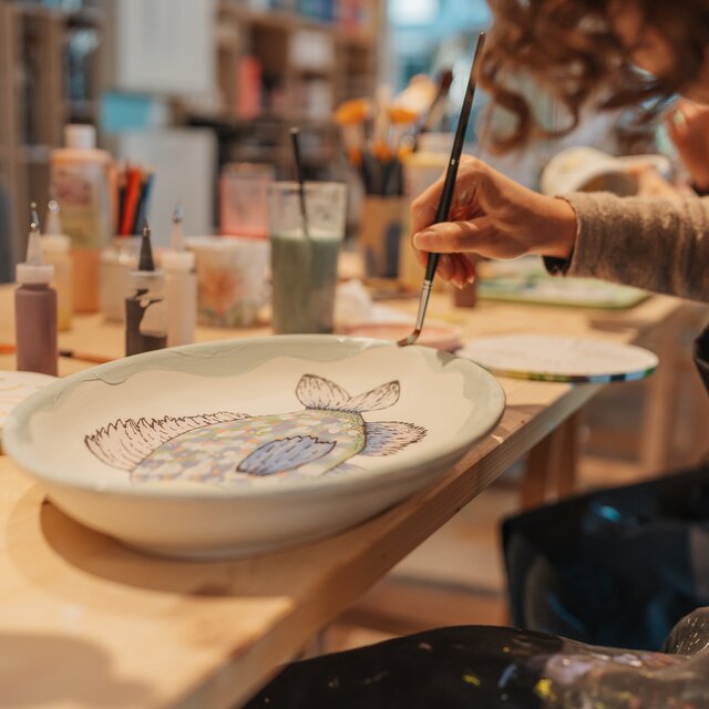Im PIE Kreativ Café findest du eine grosse Auswahl an Keramik-Rohlingen: Teller, Schüsseln, Tassen oder kleine Eierbecher. Jeder Rohling ist eine leere Leinwand, die nur darauf wartet, von dir gestaltet zu werden. Du brauchst keine Vorkenntnisse und kein eigenes Material – such dir einfach dein Stück aus, mach es dir bei Kaffee, Kuchen oder Brunch gemütlich und starte in dein kreatives Mini-Abenteuer.