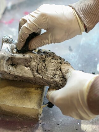 Grössere Skulpturen benötigen oft ein Drahtgestell oder Styroporkern im Inneren, um stabil zu bleiben. Das nennt man Armierung. Damit kannst du realistischere Grössen (ab ca. 30 cm Höhe) formen, ohne dass der Ton absackt.