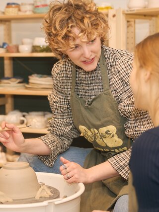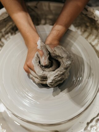 Wenn du Lust hast, die Grundlagen direkt live zu lernen, dann schnupper doch in unseren Töpferkurs hinein oder probiere gleich die Drehscheibe aus.