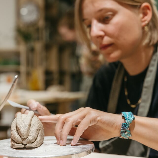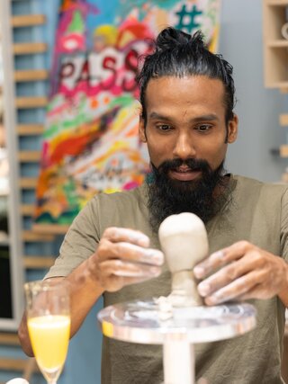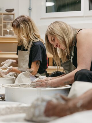 Falls du es professioneller angehen möchtest, schau mal in unseren Töpferkurs hinein oder probier dich bei uns an der Drehscheibe.
