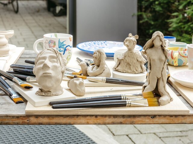 Am Ende wird enthüllt wer wen geformt hat. Die Ergebnisse sind ehrlich, schräg und immer ein bisschen zu gut – genau deswegen erinnert sich jeder noch Jahre später daran. Die fertigen Skulpturen werden von uns glasiert und gebrannt und sind nach ca. 4 Wochen abholbereit. Das persönlichste Souvenir das man aus Ton machen kann.