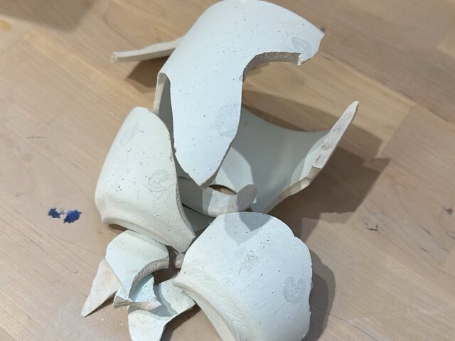 Kleine Katastrophen gehören zum Töpfer-Abenteuer dazu. Falls du dein Werk auf diesem Friedhof der Scherben entdeckst: keine Sorge – wir kümmern uns und bieten dir gerne eine neue Runde an.