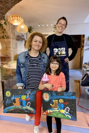 «We absolutely loved the Creative Café - delicious food, a relaxed atmosphere and the creative freedom to just get started spontaneously. We painted ceramics, got inspired and immediately wanted to try lino printing on our next visit!»