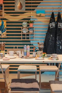 Du wirst in unserem gemütlichen, bunten Studio empfangen – ein Ort, wo die Kreativität genauso fliesst wie die Drinks. Mach’s dir bequem, gönn dir etwas Leckeres, und geniesse eine entspannte Anleitung durch unsere herzlichen Kursleiter:innen.