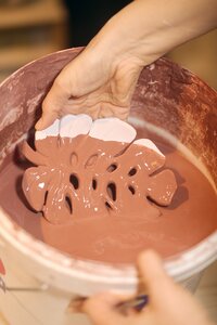 Sobald dein Blattteller geformt ist, kommt Farbe ins Spiel. Mit der Unterglasurtechnik bringst du dein Design zum Leben – dezent oder knallig, botanisch oder wild. Unsere Kursleiter*innen stehen dir mit Tipps und Inspiration zur Seite – aber der Stil kommt ganz von dir.