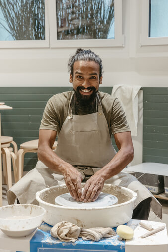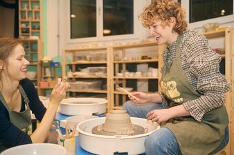 - Eine entspannte, kreative Session mit unseren Töpfer*innen am Rad
