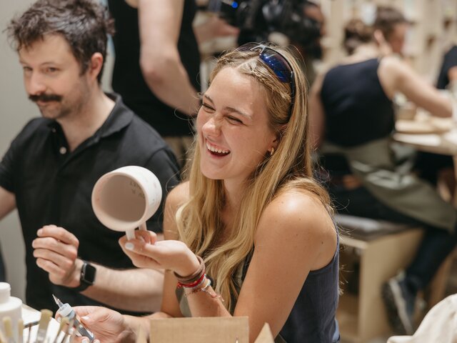 - Eine entspannte, kreative Session mit Anleitung durch eine:n unserer Keramikkünstler:innen