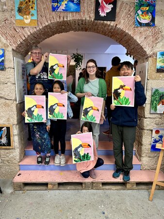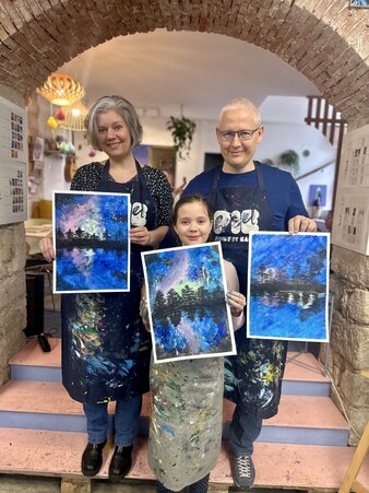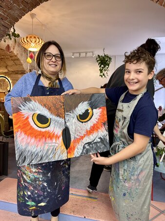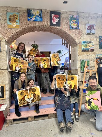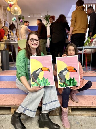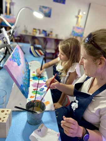 Überhaupt nicht! Jeder kann malen – und bei uns geht es vor allem um den Spass am gemeinsamen Kreativsein. Egal ob Kind oder Elternteil, Anfänger:in oder kleiner Profi – alle sind willkommen. Du wirst staunen, was in dir steckt!