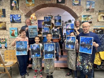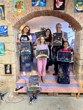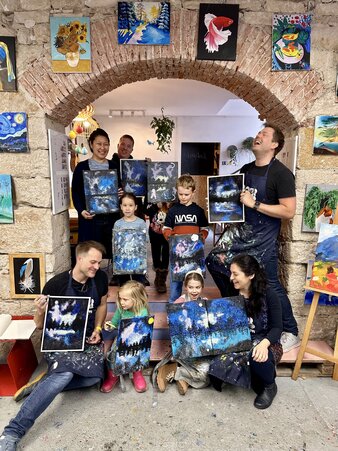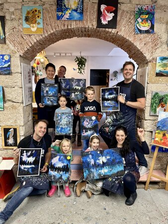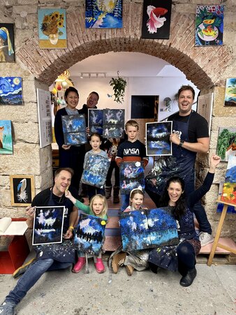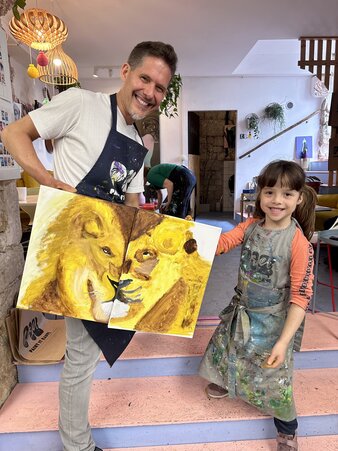 Ja, absolut! Picasso im Pyjama ist ein gemeinsames Erlebnis für Kinder und Eltern. Ihr könnt Seite an Seite kreativ werden – mit Pinsel, Ton oder Farben.
