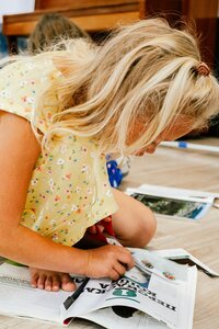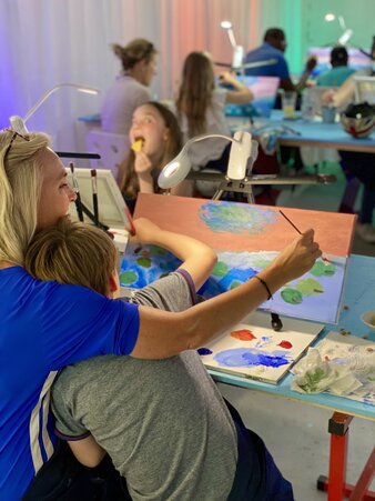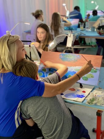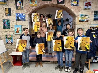 Die von unseren Lehrern vorbereiteten Workshops gehen auf die Interessen und Wünsche der Kinder ein und bieten ihnen die Möglichkeit, bestimmte Werkzeuge oder Techniken kennenzulernen - von Aquarellmalerei bis hin zu allem, was Kinder sich vorstellen können. Um sicherzustellen, dass niemand zurückbleibt, werden die Kinder nicht nur von einem, sondern von zwei unserer Kunstlehrer angeleitet und unterstützt.
