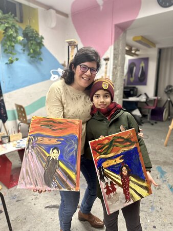 Eltern können mitmachen und gemeinsam mit ihren Kindern ein einzigartiges Kunstwerk schaffen.