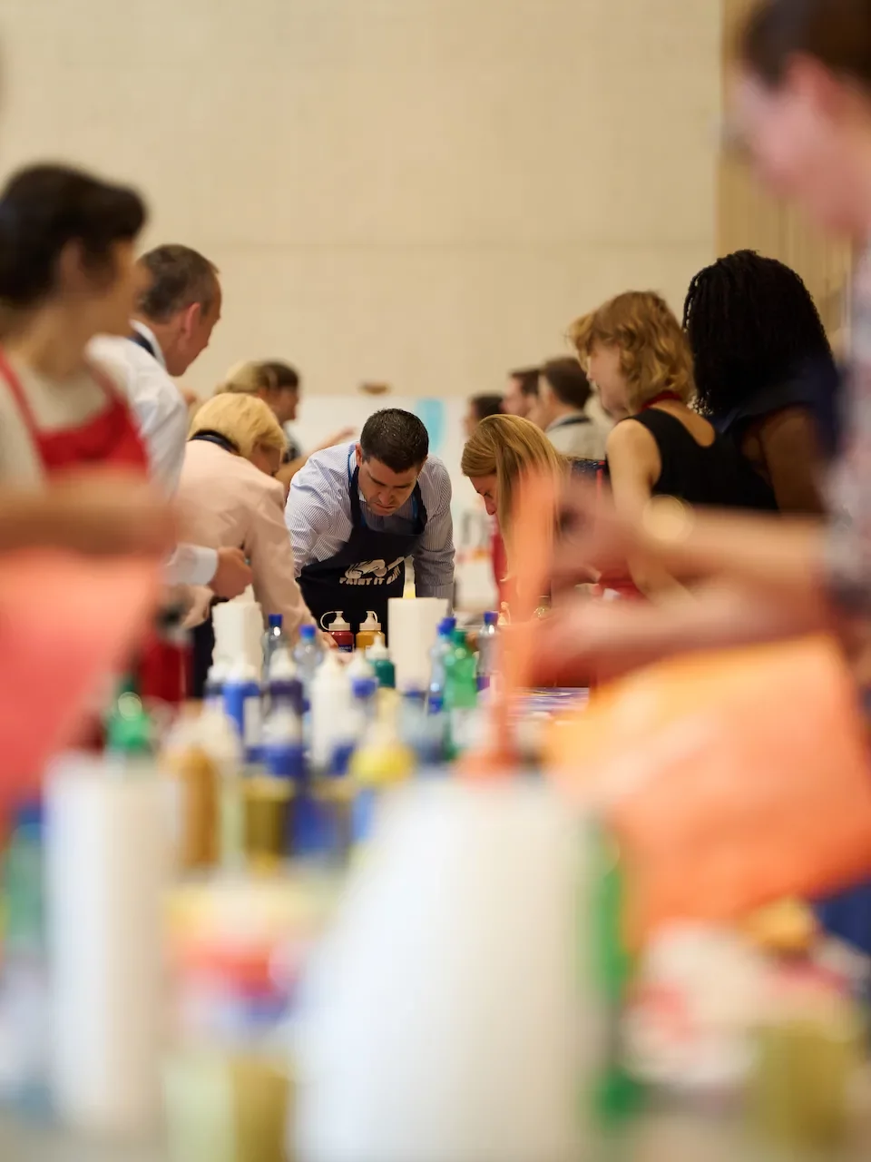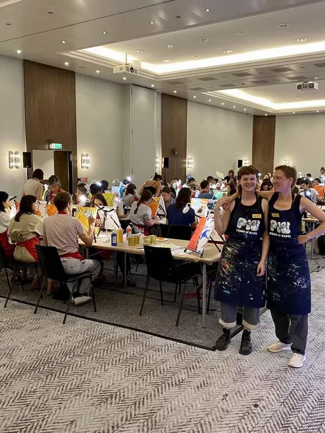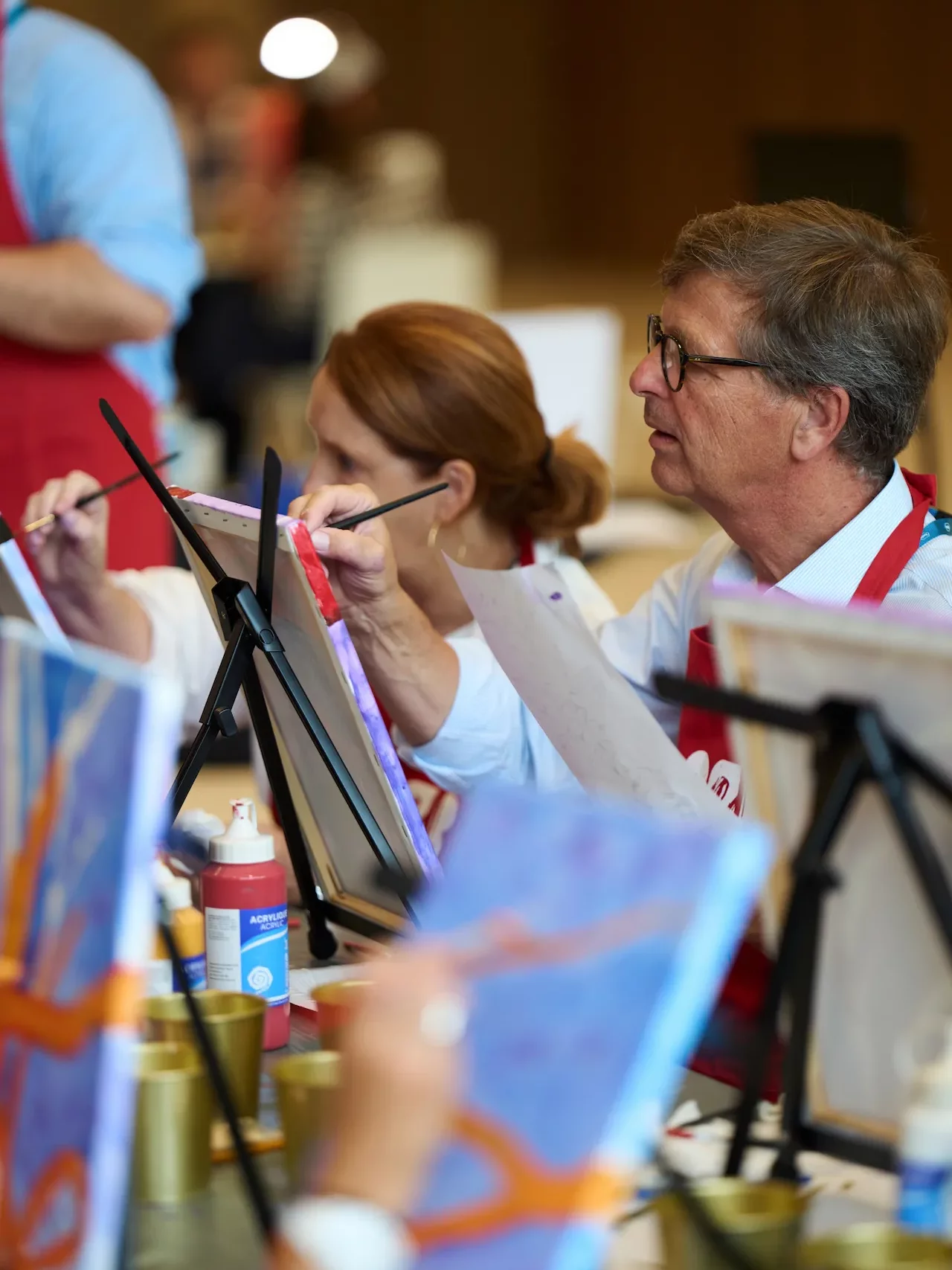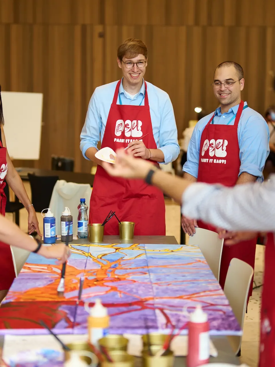 Alles inklusive. Wir stellen alles bereit- Farben, Pinsel, Leinwände, Schürzen und natürlich jede Menge gute Laune. Und das Beste: Du musst dich um nichts weiter kümmern – auch nicht hinterher ums Aufräumen.