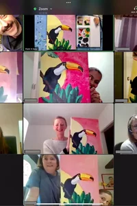 Malt euch den grauen Alltag einfach bunt. Unser Online-Malworkshop ist die perfekte Mischung aus Kunst, Teamwork und jeder Menge Spass. Trotz physischer Distanz schafft ihr gemeinsam ein einzigartiges Kunstwerk – egal, ob als Teambuilding, kreatives Firmenevent oder einfach zum gemeinsamen Lachen und Malen.