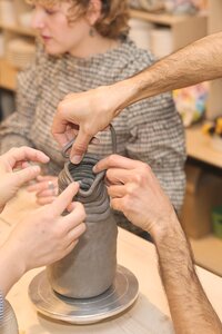 - Eine entspannte, kreative Session mit unseren Töpfer*innen am Rad