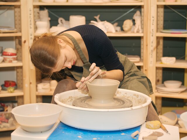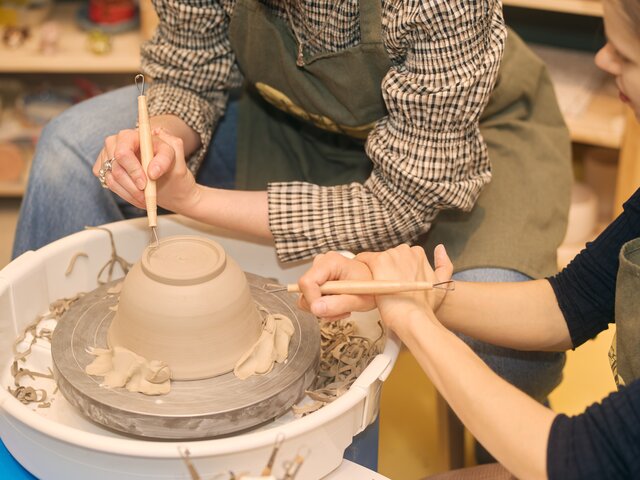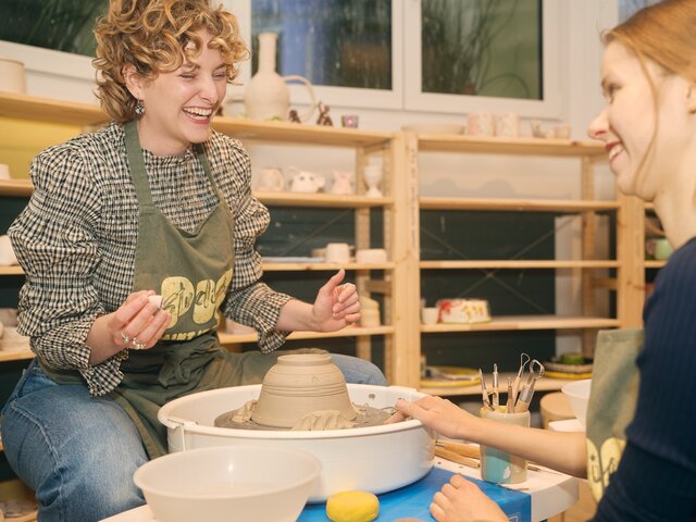 - Eine entspannte, kreative Session mit unseren Töpfer*innen am Rad