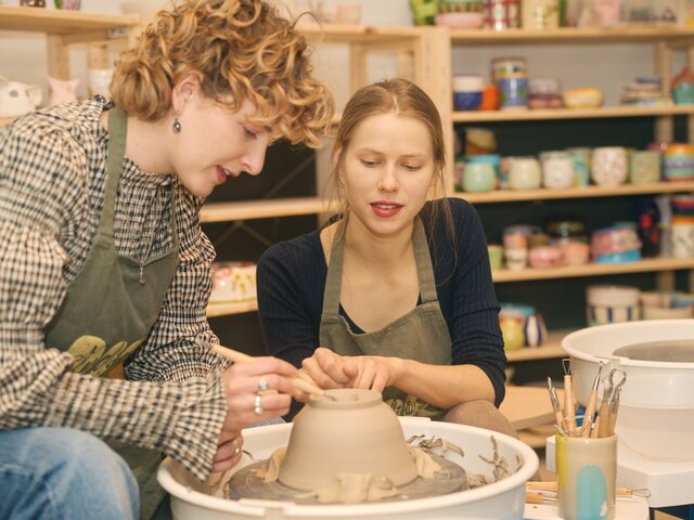 - Eine entspannte, kreative Session mit Anleitung durch eine:n unserer Keramikkünstler:innen